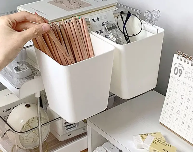 กล่องพลาสติก อเนกประสงค์ แบบแขวน แบบพกพา สําหรับใส่จัดเก็บเครื่องเขียน ของจิปาถะ