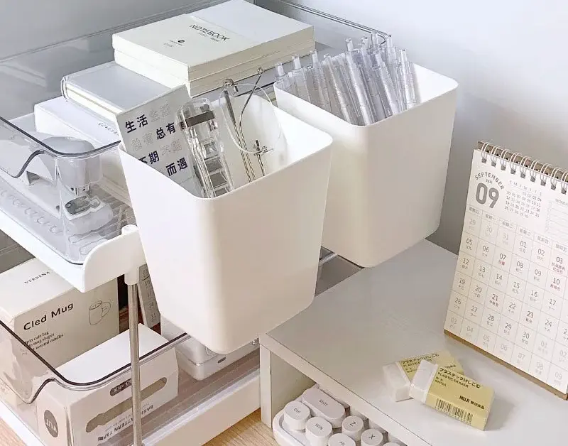 คอนโดปากกาสีชมพู กล่องจัดระเบียบ กล่องลิ้นชัก ของแต่งโต๊ะทำงาน