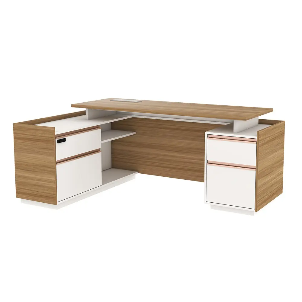 – โต๊ะทำงานผู้บริหาร L-Shape สไตล์โมเดิร์น โดดเด่นด้วยการดีไซน์สี 2-tone ผสมผสานลายไม้และสีขาวให้เข้ากันได้อย่างลงตัว ออกแบบเพื่อเพิ่มความเป็นมืออาชีพให้พื้นที่สำนักงานและโฮมออฟฟิศเต็มไปด้วยพลังแห่งการทำงาน จัดเต็มด้วยคุณสมบัติที่ครบครัน ทั้งปลั๊กไฟ พื้นที่จัดเก็บขนาดใหญ่ มาพร้อมฟังก์ชันล็อกรหัส เหมาะสำหรับการทำงานของผู้บริหารยุคใหม่