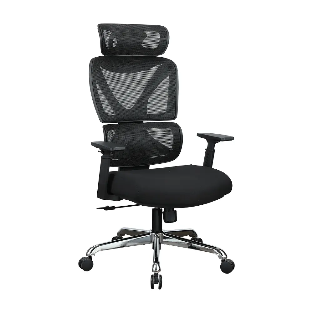 – พนักพิง และที่รองศีรษะ โครงพลาสติก หุ้มด้วยผ้าตาข่ายสีดำ ระบายอากาศได้ดี
